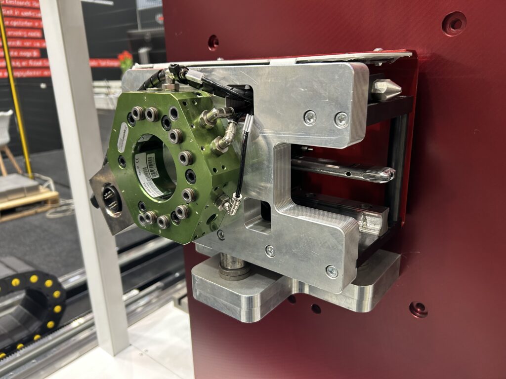 Het grote voordeel van de automatische gereedschapswisselaar is de naadloze integratie met vrijwel elk type nieuwe generatie kantbank, zonder beperkingen in lengte of tonnage.